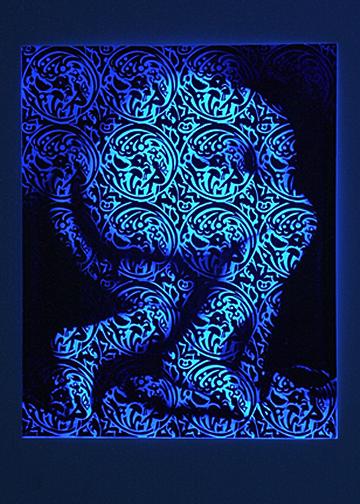 Patient portrait woodcuts were reprinted with glow pigment in paper pulp.