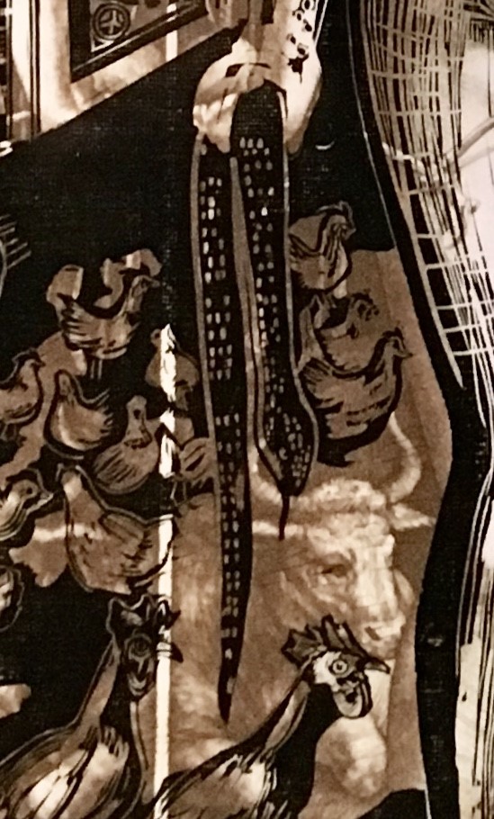 | Paradise Lost Linoleum Blockprints on Vinyl Banners of Albrect Durer’s “Adam and Eve” 3x6” Printers: Adam Case Leesma and Eric Avery |