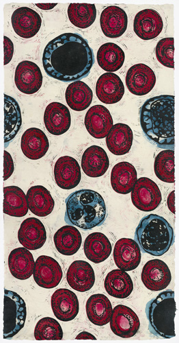 Photo mock up of artist's peripheral blood smear as wallpaper